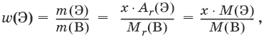 Массовая доля элемента Э в веществе В, w(Э):
