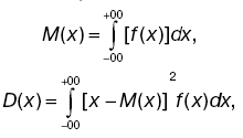 Для непрерывной случайной величины математическое ожидание и дисперсия записываются в виде: