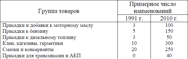Таблица 1. Ассортимент рынка автохимии Российской Федерации в 1991–2010 годах
