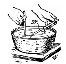 В отвесной капиллярной трубке жидкость поднимается на 10 мм над уровнем в сосуде. Как высоко поднимается она, если трубку наклонить под углом в 30° к поверхности жидкости (рис. 30)?