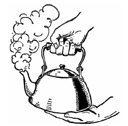 Снятый с огня металлический чайник с кипятком можно, говорят, безбоязненно поставить на ладонь: ожога не будет, хотя вода бурлит от кипения (рис. 46). Жар делается ощутительным, лишь если подержать так чайник несколько секунд. (Сам я этого опыта не проделывал, но мои ученики-рабочие отважились проверить его на себе и убедились, что он удается.)