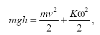 где т – масса маховика; g – ускорение свободного падения; h – высота, с какой опустился маховик; mgh – потеря потенциальной энергии, превратившейся в кинетическую энергию поступательного