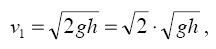 С другой стороны, мы знаем, что скорость v1 свободного падения связана с его продолжительностью t следующей зависимостью: