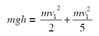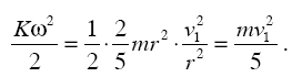 Из курса механики известно, что момент инерции K однородного шара массы т и радиуса r относительно оси, проходящей через центр, равен 2/5 тr2. Далее, легко сообразить, что угловая скорость ? этого шара, катящегося с поступательною скоростью v1, равна