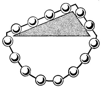 Закон равновесия сил на наклонной плоскости он открыл, не опираясь на правило параллелограмма сил, единственно лишь с помощью чертежа, который здесь воспроизведен (рис. 24). Через трехгранную призму перекинута цепь из 14 одинаковых шаров. Что произойдет с этой цепью? Нижняя часть, свисающая гирляндой, уравновешивается сама собой. Но остальные две части цепи – уравновешивают ли друг друга? Иными словами: правые два шара уравновешиваются ли левыми четырьмя? Конечно, да, – иначе цепь сама собой вечно бежала бы справа налево, потому что на место соскользнувших шаров всякий раз помещались бы другие и равновесие никогда бы не восстанавливалось. Но так как мы знаем, что цепь, перекинутая указанным образом, вовсе не движется сама собой, то, очевидно, два правых шара действительно уравновешиваются четырьмя левыми. Получается словно чудо: два шара тянут с такой же силой, как и четыре.