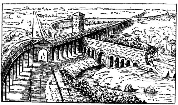 Рис. 28. Водопроводные сооружения древнего Рима в их первоначальном виде