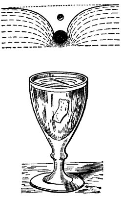 Причина плавания этих металлических предметов та, что вода плохо смачивает металл, побывавший в наших руках и потому покрытый тончайшим слоем жира. Оттого вокруг плавающей иглы на поверхности воды образуется вдавленность, ее можно даже видеть. Поверхностная пленка жидкости, стремясь распрямиться, оказывает давление вверх на иглу и тем поддерживает ее. Поддерживает иглу также и выталкивающая сила жидкости, согласно закону плавания; игла выталкивается снизу с силой, равной весу вытесненной ею воды.