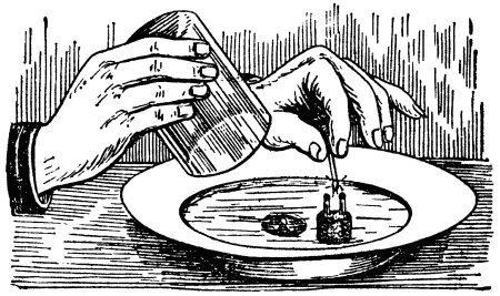 Рис. 39. Как собрать всю воду на тарелке под стакан, опрокинутый вверх дном
