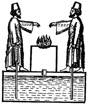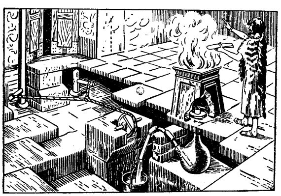 Древнегреческий механик Герон Александрийский, изобретатель фонтана, носящего его имя, оставил нам описание двух остроумных способов, с помощью которых египетские жрецы обманывали народ, внушая ему веру в чудеса.