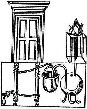 Рис. 42. Схема устройства дверей храма, которые сами открываются, когда на жертвеннике пылает огонь (ср. рис. 41)