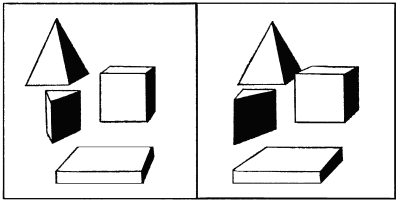 Рис. 63. Эти четыре геометрических тела при слиянии изображений кажутся словно парящими в пространстве