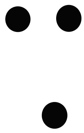 Рис. 67. Пустой промежуток между нижним кружком и каждым из верхних кажется больше, нежели расстояние между наружными краями верхних кружков. В действительности же расстояния равны