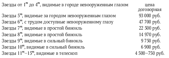 А, собственно, почему? Почему бы не назвать звезду именем своей любимой? Пусть даже за деньги: труд звездочета должен оплачиваться. А нельзя ли по сходной цене купить участок земли на Луне, Венере или Марсе? Поскольку подобные вопросы не приходили ученым в голову, то и ответа на них раньше нигде нельзя было отыскать. Поэтому и нашлись деловые люди, которые решили наладить небесный бизнес. Звездная коммерция стартовала в 1979 г. в виде лондонской компании International Star Registry. Дело широко развернулось в начале 1990-х гг. и довольно быстро через Интернет охватило весь мир. Различные издания, в зависимости от своей респектабельности, либо спешат предупредить доверчивую публику и высмеивают лукавых коммерсантов, либо с умилением пишут о новых именах звезд – «Юрий Лужков», «Ван Клиберн», «Ирина Слуцкая»… Людям могущественным или знаменитым звезды дарят в рекламных целях, а остальным предлагают купить. И ведь покупают! Расценки в АО «Космос – Земля» на этот товар на начало 2008 г. перед вами.