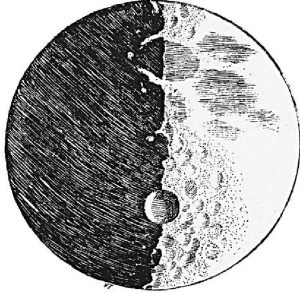 Роль Хэрриота в первых телескопических исследованиях Луны малоизвестна. В основном это связано с тем, что он почти не публиковал свои труды, хотя и оставил большой научный архив – около 10 ООО страниц! Между прочим, Хэрриоту мы обязаны математическими символами > и <. Телескоп, с помощью которого он начал наблюдения Луны, был, вероятно, не очень совершенным. Во всяком случае, он имел увеличение не более 5–7 раз. Первая зарисовка Луны, сделанная Хэрриотом 26 июля 1609 г., почти не содержит деталей. Кратеров на ней не изображено, хотя линия терминатора показана неровной, с несколькими выступами. Это говорит о том, что Хэрриот, вероятно, видел лунные горы. Томас Хэрриот возобновил телескопические наблюдения и зарисовки Луны только через год и то, возможно, под влиянием слухов о замечательных открытиях Галилея.