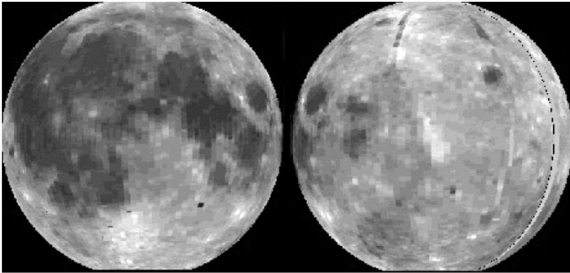 Хорошо видно, в частности, что морей на обратной стороне Луны значительно меньше по сравнению с видимой стороной.