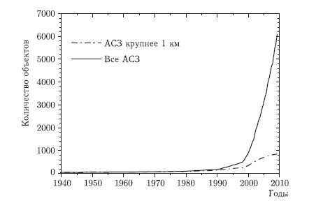 Динамика обнаружения АСЗ представлена на рис. 1.2. На графике хорошо видно, как резко возрос темп обнаружения АСЗ, начиная с 1998 г. Это связано с началом программы «Космическая стража».