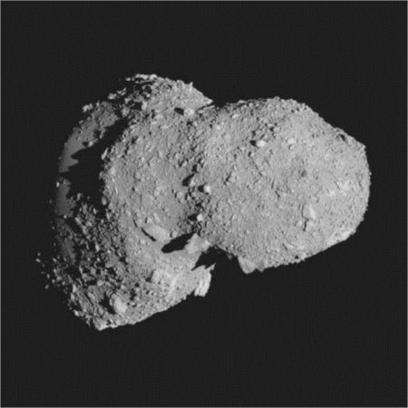 Еще один пример – астероид (25143) Итокава (рис. 2.16). Этот астероид является одним из довольно подробно исследованных астероидов [Hirata et al., 2009; Barnouin-Jha et al., 2008; Cheng and Barnouin-Jha, 2007]. Орбита астероида находится между орбитами Марса и Земли. Этот астероид был выбран объектом исследования зонда «Хаябуса» и впоследствии получил свое современное название по имени основателя японской космической программы профессора Хидэо Итокавы. Астероид Итокава относится к астероидам класса S(IV) (см. главу 3). Длина астероида составляет 548 м, средняя плотность – 2,1 г/см3.