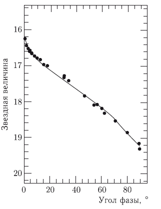 где ? – угол фазы. Коэффициент пропорциональности k, хотя и отличается для разных астероидов, варьируется в основном в пределах 0,01–0,05 m/°.