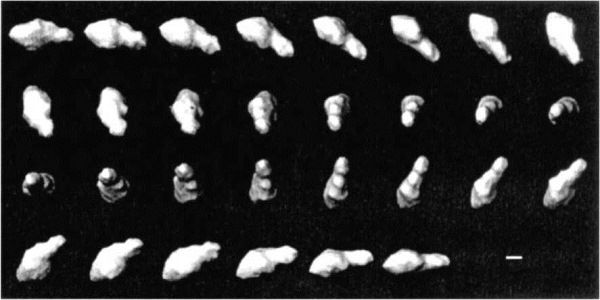 Рис. 3.20. Последовательные фазы вращения астероида (4179) Toutatis [Hudson and Ostro, 1995]