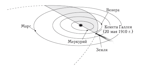 Рис. 4.3. Положение кометы Галлея в момент ее тесного сближения с Землей 20 мая 1910 г.