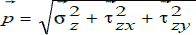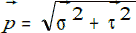 Разложим вектор полного напряжения p на две составляющие: нормальное напряжение ?, направленное по нормали к сечению, и касательное напряжением ?, направленное по касательной к сечению. Между величинами p, ?, ? существует зависимость, которая выражается формулой: