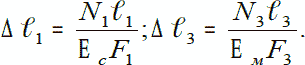 Статистически неопределимые задачи – это задачи, в которых число неизвестных превышает число уравнений статистики. Недостающие уравнения составляются исходя из условия совместности деформаций. Для примера рассмотрим систему, представленную на Рис. 2.1.