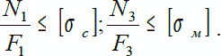 По величинам этих усилий и допускаемым напряжениям определим F1 и F3 из условий: