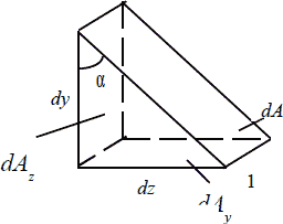 Возьмем произвольную точку тела и рассмотрим элементарный параллелепипед с длинами сторон dx, dy, dz в ее окрестности. Рассечем этот параллелепипед плоскостью, перпендикулярной плоскости zy (Рис. 5.1).