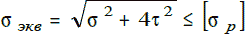 Если известны не главные напряжения, а нормальное и касательные напряжения в поперечном сечении, условие прочности имеет вид: