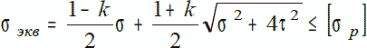 . Если известны нормальное и касательные напряжения, условие прочности записывается в следующем виде:
