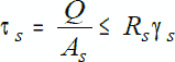 В этой формуле ?s – касательные напряжения среза, As – площадь среза, Rs – расчетное сопротивление срезу, ?c – коэффициент условий работы.