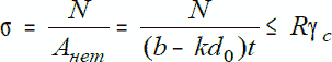 где Aнет = A – kd0t – площадь нетто опасного поперечного сечения;