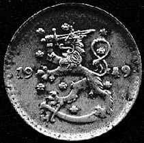 Монета из железа. Финляндия, 1 марка, 1949
