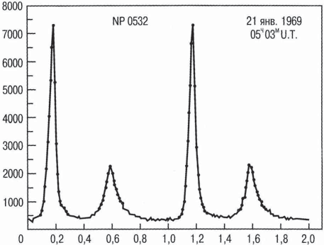 Таким образом, надежда обнаружить нейтронные звезды по их тепловому рентгеновскому излучению оказалась вроде бы преждевременной. И вдруг, буквально «как гром среди ясного неба», было сделано открытие, превратившее таинственные нейтронные звезды в наблюдаемые объекты. Речь идет об открытии пульсаров, едва ли не самом впечатляющем открытии в астрономии за несколько последних десятилетий.