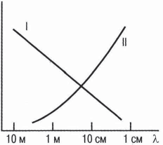 Рис. 16. Спектр галактического (I) и изотропного «трехградусного» (II) излучения
