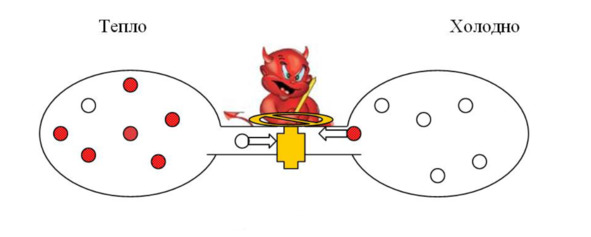 Вот, у Максвелла, например, не хватило терпения: он предложил на трубке, соединяющей сосуды, установить кран и посадить у крана демона, который бы в одну сторону пропускал только быстрые частицы, а в другую – только медленные. Этот неутомимый демон вошел в учебники под названием «демон Максвелла».