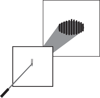 Если вы попробуете провести этот эксперимент дома, то обнаружите, что всё не так просто, как я рассказываю. Во-первых, интерференционная картина будет хорошо видна, только если щели очень узкие и расположены очень близко друг к другу. Не пытайтесь прорезать щели консервным ножом – ничего путного не получится. Лучше возьмите бритву. Во-вторых, источник света должен быть точечным. Древний нетехнологичный способ создания точечного источника света состоит в закрывании лампочки накаливания чёрной бумагой, в которой проколото булавочное отверстие. Современный высокотехнологичный способ заключается в использовании лазера. Идеально подойдёт лазерная указка. Проходя через аккуратно прорезанные щели, лазерный свет создаёт прекрасную чёткую интерференционную картину. Основная трудность при проведении этого эксперимента – надёжно закрепить все компоненты.