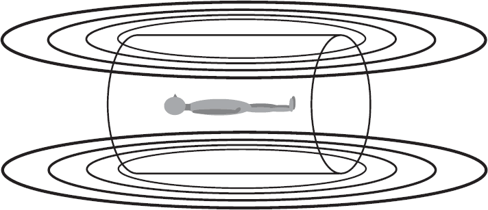 Идея вселенных с альтернативными законами природы кажется научной фантастикой. Но она более реальна, чем фантастика. Благодаря современным медицинским технологиям альтернативные вселенные регулярно создаются внутри МРТ-аппаратов. Аббревиатура МРТ была придумана для замены прежнего названия, ЯМР – ядерного магнитного резонанса, – чтобы не пугать обывателя страшным словом «ядерный». Поэтому название технологии было заменено на магнитно-резонансную томографию, или сокращённо – МРТ. В действительности в явлении ядерного магнитного резонанса не участвуют ни ядра урана или плутония, ни ядерные боеголовки. Ядра, о которых идёт речь в названии, находятся внутри тела пациента, и МРТ-аппарат аккуратно их возбуждает. Обычно этот аппарат представляет собой полый цилиндр, в стенках которого размещены электрические катушки, создающие внутри цилиндра очень сильное магнитное поле. Пациент внутри цилиндра находится в своей собственной маленькой вселенной, свойства вакуума которой слегка отличаются от свойств вакуума вселенной за пределами цилиндра. Представьте себе, что вы проснулись утром внутри такой машины, не зная, где вы находитесь. Что-то будет не так с законами физики. Первое, что вы заметите, – странное, я бы даже сказал опасное поведение железных предметов. Если у вас случайно в кармане пижамы окажется компас, то вы обнаружите, что его стрелка как влитая указывает в строго определённом направлении.