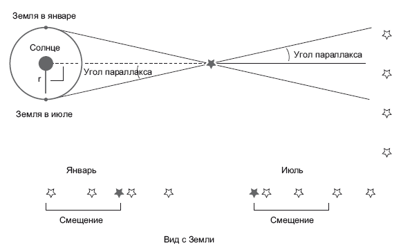 Чем дальше звезда, тем меньше такое смещение. Но таким способом можно измерить расстояние до очень многих относительно близких звезд. Для этого придется воспользоваться простейшими геометрическими фактами.