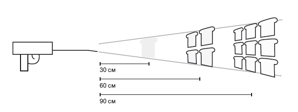 Расположим ломтик хлеба в 30 см от масломета. Я откалибровал орудие так, чтобы порция масла полностью, до краешков, покрывала ломтик, расположенный на расстоянии 30 см. Если вам нравится намазывать масло на хлеб до самого края, то вы оцените такое изобретение. Теперь допустим, что я хочу сэкономить деньги, как любой хороший бизнесмен: хочу замазать тем же количеством масла несколько ломтиков хлеба. Но масло все равно должно распределяться по ломтику равномерно. Первый ломтик мы отставляли на 30 см, а эти отставим на 60 см. Масляный аэрозоль разлетится на большую площадь. На двойном расстоянии один залп поможет замаслить площадь в 2 ломтика шириной и 2 ломтика высотой. То есть масляный аэрозоль накроет решетку размером 2 ? 2 хлебных ломтика, всего намажет 4 ломтика. Всего лишь удвоили расстояние – и уже смогли намазать маслом 4 ломтика. Если утроить расстояние, то можно побиться о заклад, что аэрозоля хватит, чтобы намазать 3 ? 3 = 9 ломтиков хлеба. Один ломтик, четыре ломтика, девять ломтиков. Сколько масла попадает на один ломтик хлеба, расположенный на расстоянии 90 см, по сравнению с ломтиком, который был удален всего на 30 см? Одна девятая. Хлеб все равно орошается маслом, но вдевятеро слабее. Клиент будет недоволен, зато понятно, к чему я клоню.