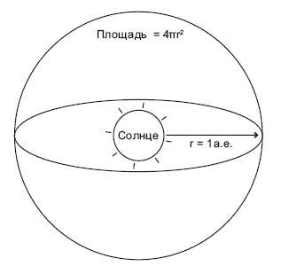 Рис. 5.3. Солнце – это сфера. Солнечное излучение распределяется по площади 4?r2, перед этим проходя через сферу радиусом r. Предоставлено Дж. Ричардом Готтом