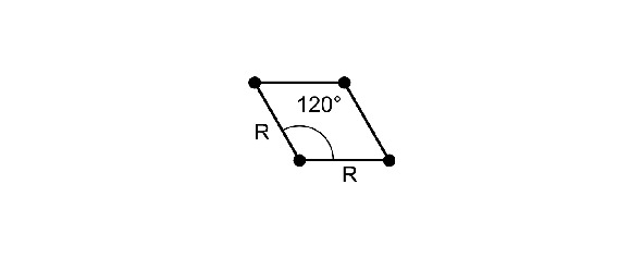 К счастью для нас задачу с плотностью объектов и взаимным их расположением уже давно решили в другой области. Для кристаллических решеток давно придуманы понятия точечных групп, решеток Браве, пространственных групп и сингоний. Чтобы не запутаться в кристаллографии мы просто представим себе, что у нас игроки расположены в вершинах правильных треугольников для плоского случая задачи и в вершинах правильных тетраэдров для объёмного случая. Таким образом в плоском случае у нас получаются равные шаги трансляций под углом 120° и ромбовидная элементарная ячейка, а во втором случае мы не будем использовать углы, а просто сразу по характеристикам правильного тетраэдра вычислим объём элементарной ячейки. На рисунках 5а и 5б показаны примеры для обоих случаев размерностей задачи.