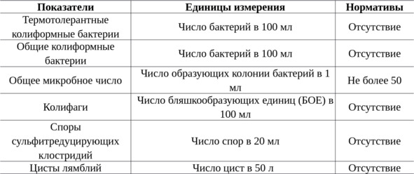 Вода является весьма благоприятной средой для развития множественных форм простейших, бактерий, и высших организмов. Большое число развивающихся в воде микробов являются распространителями водных инфекций разного рода, типичным примером которых являются микроорганизмы – возбудители холеры, дизентерии, брюшного тифа и пр. Вода, помимо этого, может быть переносчиком различного рода паразитозов (аскарид, карликового цепня и пр.) и простейших (амеб, лямблий и пр.). Разнообразие форм патогенных организмов, сложность, дороговизна и длительность процесса их определения определяет необходимость анализа воды на наличие в ней т.н. маркерных микроорганизмов, которые указывают на потенциальную возможность патогенного загрязнения воды патогенной микрофлорой (табл. 1). В качестве критерия микробиологической чистоты выбрана кишечная палочка. Количество кишечных палочек в воде характеризуется коли-титром (к-т) – объемом воды (см3), в котором содержится одна кишечная палочка или коли-индексом (к-и) – количеством кишечных палочек в 1 л воды.
