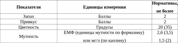 Таблица 2. Группа органолептические показатели качества воды