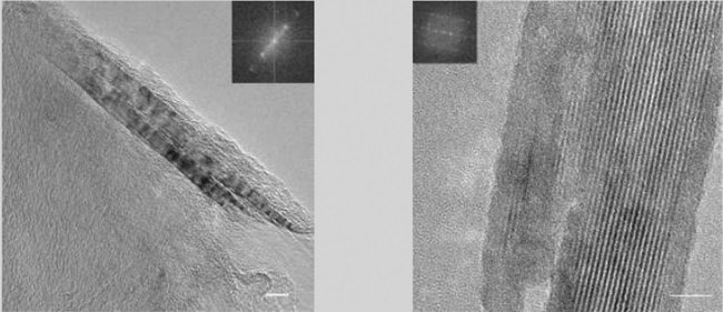 Ранее проводимые исследования микроструктуры дамасской стали показывали на наличие нановолокон цементита в материале. Сейчас группа Пауфлера обнаружила наличие нанотрубок в стали. Это открытие было сделано следующим образом: небольшой образец материала клинка был корродирован действием плавиковой кислоты, после чего материал изучался с помощью сканирующего электронного микроскопа с высоким разрешением.