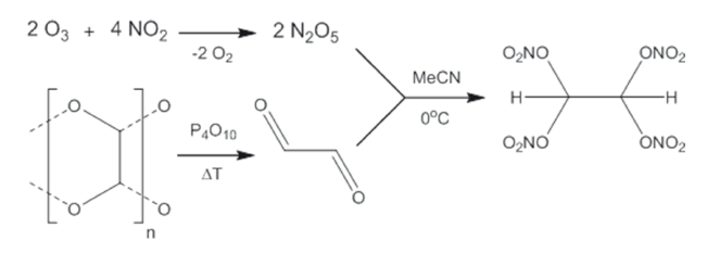 Исследователи из Мюнхенского технического университета, работающие в группе Томаса Клапотке (Thomas Klap?tke), сообщили о синтезе, протекающем в соответствии с достаточно простым протоколом, исключительно богатого кислородом тетранитратэтана (C2H2N4O12). Исследование, в результате которого удалось получить новый тип твердого окислителя, является частью международного проекта по получению новых окислителей, способных заменить токсичный перхлорат аммония.