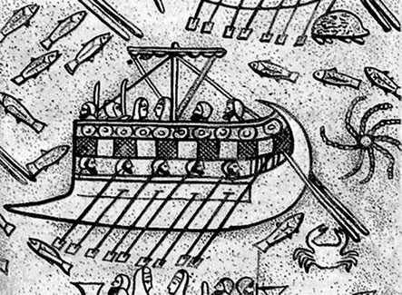 Однажды финикийский корабль, гружённый содой, причалил во время бури к устью реки Бела. Поскольку камней на берегу не оказалось, котлы для приготовления пищи пришлось установить на спрессованных кусках соды. Каково же было изумление моряков, когда по окончании трапезы они обнаружили на песке прозрачную стеклянную массу! Легенда гласит, что именно это случайное открытие позволило ловким финикийским купцам наладить впоследствии производство стекла]
