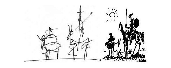 Собирая образ в сознании, рассудок «дорисовывает» недостающие детали – добавляет в собираемый образ недостающие детали-признаки явлений. В рисунке, набросанном лишь несколькими штрихами, человек видит изображение, а не набор штрихов, потому что, на самом деле, он «видит» образ, собранный рассудком в его сознании. Вот, например, рисунки, на которых можно узнать известных литературных персонажей: