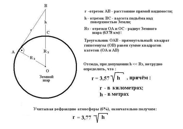 Расстояние прямой видимости… – оно, ведь, как-то зависит от высоты наблюдения, – вспомнилось из курса физики за 7-й класс. Взял карандаш, разгладил тот самый, злополучный, листок бумаги и…