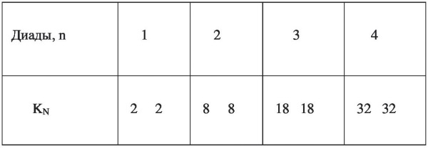 Получились числовые сдвоенности – Диады из числовых Монад: 2; 8; 18; 32.